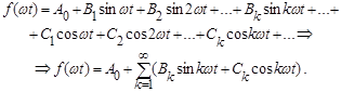, удовлетворяющую условиям Дирихле, можно разложить в ряд Фурье. Этот ряд состоит из суммы постоянной составляющей А0 (нулевая гармоника) и синусоид разных частот (гармоник)