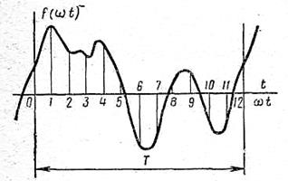 В том случае, если периодическая функция задана не аналитически, а в виде графической кривой, то при разложении ее в ряд Фурье коэффициенты ряда можно отыскать приближенно, заменяя интегралы суммой. В этом случае период Т кривой на графике разбивают на n равных частей, после чего коэффициенты