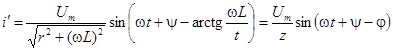 В общем же случае на синусоидальные установившиеся напряжения на участках цепи и ток налагаются свободные составляющие, значения которых уменьшаются по показательному закону. В результате ток i и напряжения