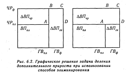 В первом варианте расчета условный показатель имеет форму: ВПусл = ЧРф х ГВпл, во втором – ВПусл = ЧРпл х ГВф.