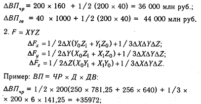 Для расчета влияния факторов в кратных и смешанных моделях используются следующие рабочие формулы.