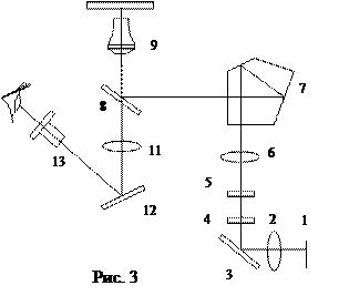 Радиусы интерференционных колец измеряются при помощи микроскопа МИМ-7 (рис. 3). Нить накала лампы 1 коллиматором 2 и зеркалом 3 проектируется в плоскости апертурной диафрагмы 5. При этом свет проходит через светофильтр 4. Системой, состоящей из линз 6, призмы 7 и отражательной пластинки 8, апертурная диафрагма изображается в плоскости опорного торца для объективов. Отражательная пластинка 8 направляет в объектив 9 лучи, которые, отразившись от объекта 10, вновь проходят через объектив, выходят из него параллельным пучком, проходят отражательную пластинку и попадают на ахроматическую линзу 11.