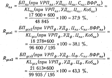 Расчет влияния факторов первого порядка на изменение уровня рентабельности в целом по предприятию можно выполнить способом цепной подстановки, используя данные табл. 20.2. 20.3: