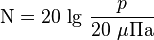 = 20 мкПа, соответствующему порогу слышимости синусоидальной звуковой волны частотой 1 кГц: