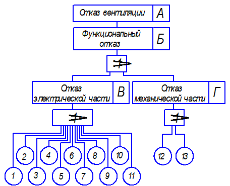 Для определения причин возникновения отказов на производственном оборудовании применяется анализ методом «дерева неисправностей».