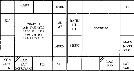 Aroodha Лагна (Дева) - aspected Солнцем, Венерой, Rahu и Кету, указание на его умение быть лидером и знания политики. Однако, Луна находится в двенадцатом доме. Таким образом, хотя его партия была самой большой отдельной партией и он стал Премьер-министром Индии, Rajyogas не могла поддерживать его положение больше, чем две недели. Солнце - предвестник Rajyogas, а Луна - источник силы.