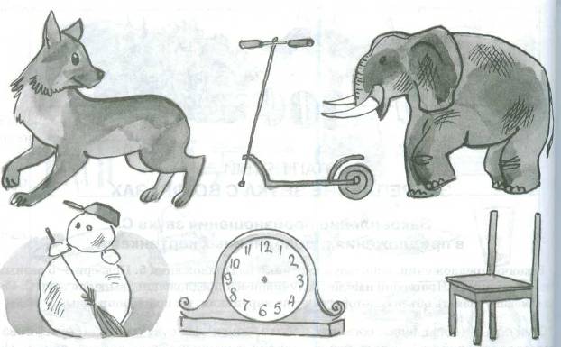 К словам-признакам подбери картинки из Приложения 5. Составь предложения о детях Соне и Сане из Приложения 2. Проговори их, выделяя звук С. Подумай и назови предметы, которых нет на картинках.