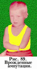 Под врожденными ампутациями понимают полное или отсутствие дистального отдела конечности. Частичное недоразвитие конечности - это отсутствие или недоразвитие дистальных отделов конечности или неправильное развитие отдельных костей, мышц, суставов, (врожденная косорукость, дефекты развития пальцев, врожденный синостоз костей предплечья).