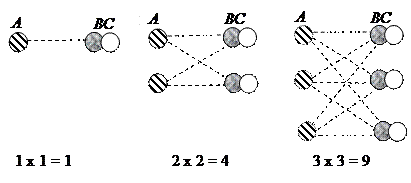 Рис. 51. Модель подсчета числа столкновений реагентов А и ВС, способных привести к химической реакции