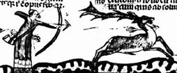 Очередная английская миниатюра, изображающая расстрел викингами св. Эдмунда: викинг (по крайней мере, в представлении английского художника) вооружен почти longbow
