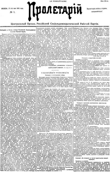 Первая страница большевистской газеты «Пролетарий» № 1,