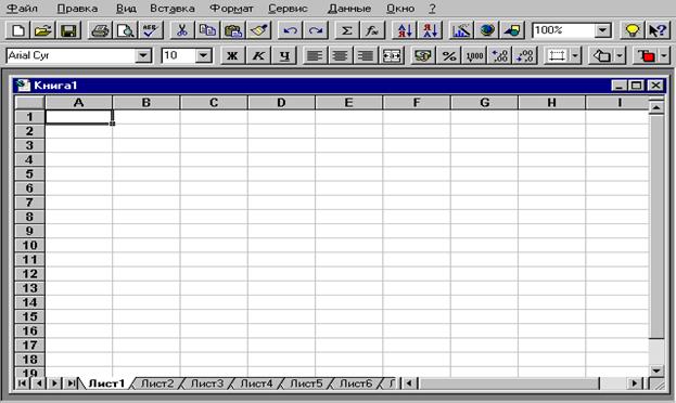 Рис. 6.1. Общий вид рабочего листа программы EXCEL