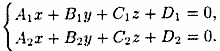б) Для случая, когда прямые заданы уравнениями в общем виде A1x + B1y + C1 = 0, A2x + B2y + C2 = 0, необходимое и достаточное условие их параллельности состоит в том, что коэффициенты при соответствующих текущих координатах в их уравнениях пропорциональны, т. е.