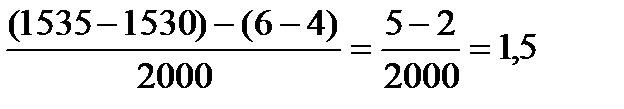 Уклон отвода ширины колеи при ручных промерах определяется как разность значений ширины колеи в точках через 2 м, уменьшенная на разность величин бокового износа в этих точках и деленная на 2000.