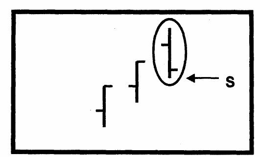 После образования бычьего/медвежьего бара (еще раз напоминаем, что этот сигнал имеет силу только тогда, когда бар находится далеко за пределами пасти Аллигатора; чем дальше, тем лучше сигнал) мы готовы размещать стопы для нашего входа. В случае бара бычьего разворота мы помещаем покупающий стоп чуть выше вершины бара бычьего разворота (см. точку В, Рисунок 9-1), а на баре медвежьего разворота мы размещаем продающий стоп чуть ниже основания бара медвежьего разворота (см. точку S, Рисунок 9.2). Поскольку все бары бычьего разворота образуются, когда рынок идет вниз, мы ожидаем, что АО (Awesome Oscillator - по существу, хотя и орфографически неправильно, это можно перевести как "Абалденный" Осциллятор; подробнее он объясняется в Главе 10) будет иметь красный цвет (моментум идет вниз). Точно так же, когда образуется бар медвежьего разворота, рынок находится в восходящем движении, и мы ожидаем, что АО будет зеленого цвета (указывая, что моментум идет вверх). Сигнал бычьего/медвежьего разворота всегда означает сделку против тренда.