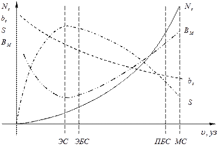 Все экономические показатели зависят от мощности СЭУ, развиваемой на данном ходовом режиме. Характер изменений экономических и мощностных показателей в зависимости от скорости движения судна показан на рис. 3. Из графиков зависимостей видно, что расход топлива на милю