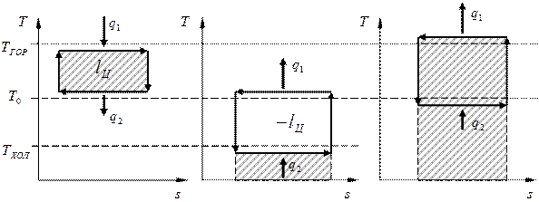 Из рассмотренных выше прямых и обратных циклов видно, что при заданных значениях температур «горячего» –