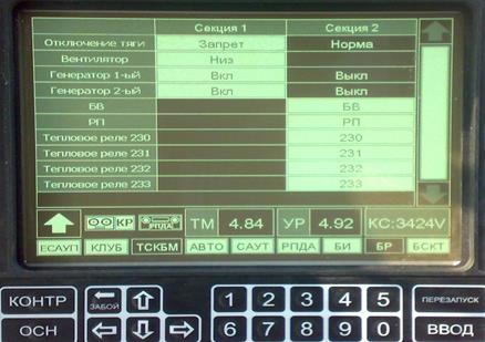 Диагностика состояния второго электровоза машинисту видна на правом экране в столбце «Секция 2» (см. рис 35).