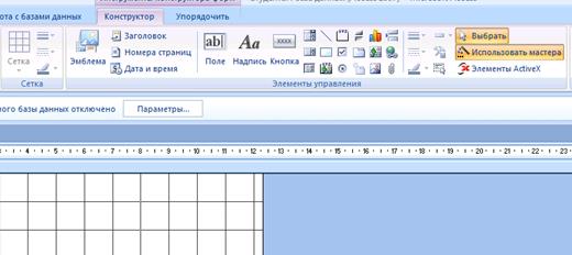 После выбора источника данных для формы, а также способа ее создания, при переходе к следующему этапу автоматически обновляются панели инструментов. Например, в режиме Конструктора панель инструментов такая: