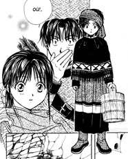 И тогда Римудо решительно ее целует, а потом неожиданно для себя признается, что просто не выносит, когда ей плохо. И что лучше бы она не была жрицей… С этими словами он уходит, оставляя совершенно ошарашенную Такико. Видя, что Уруки снова собирается уехать, Томите кричит ему вслед, что тот просто пытается удрать от своей судьбы, и обещает, что сможет сам защитить жрицу.