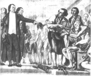 Рис. 12.2. Филипп Пинель был первым врачом, который в 1792 году потребовал освободить «умалишенных», содержавшихся в приюте Бисетр в Париже, от сковывавших их цепей и начал относиться к ним как к психически «больным» людям. Этот гуманный акт открыл эру психиатрии.