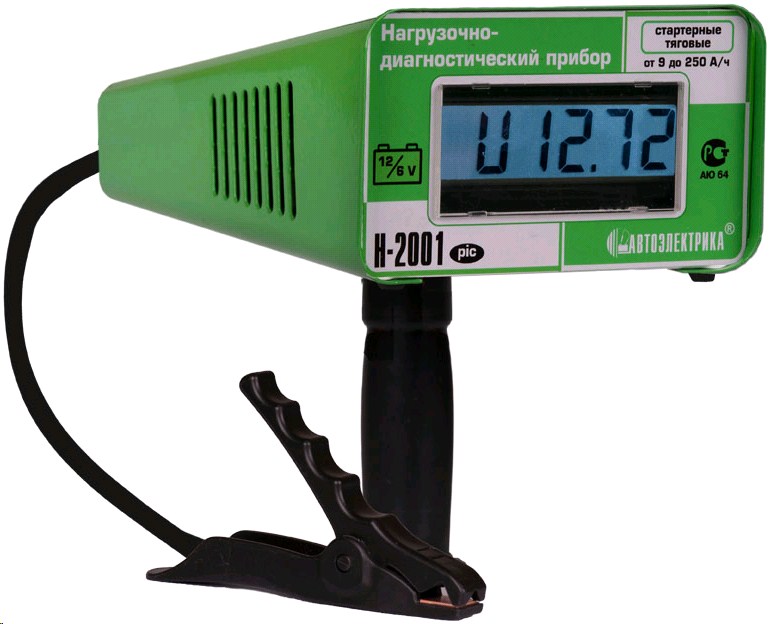 Прибор производит замер напряжения (ЭДС) батареи (высокоточным измерителем, до сотых долей) с дальнейшим подключением расчетной нагрузки, не допуская внешних искрообразований. И по результатам пока- заний определяется степень заряда и исправность батареи, работоспособность стартера, генератора, реле регулятора.