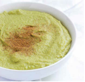 3. Снизьте температуру до низкой. Добавьте мускатный орех и кусочки авокадо и готовьте ещё 3 – 4 минуты, пока авокадо не станет тёплым.