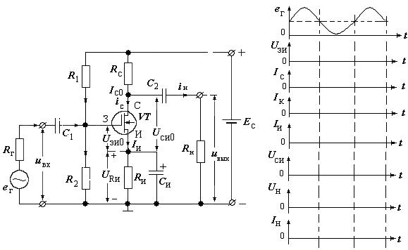 - параметры стоко-затворной характеристики; значение крутизны и напряжения отсечки. Принять, что каскад работает в нормальных стационарных условиях, поэтому влиянием температуры на режим транзистора можно пренебречь.