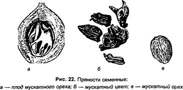 Пряности семенные (рис. 22). К ним относят горчицу, мускатный орех и мускатный цвет.