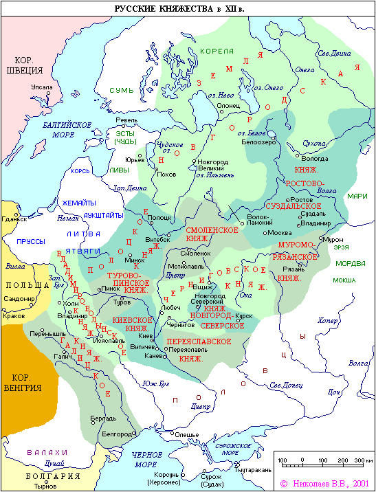 Именно в этот период в русских землях сформировался феодализм, что не является простой случайностью, а отражает общую закономерность: феодализм всегда и везде возникает в условиях редкого населения. Его основной чертой, так же как и в других примерах феодализма, было исчезновение государства и его превращение в вотчины – территории, которые фактически являлись, вместе со всем на них находящимся, собственностью князей или бояр. Так, по подсчетам историка Б.Рыбакова, в середине XII в. в Киевской Руси было 15 княжеств, в начале XIII в. – около 50, а в XIV в. – примерно 250 княжеств ([109] с.469-472), в каждом из которых сидел и управлял подвластной территорией удельный князек.