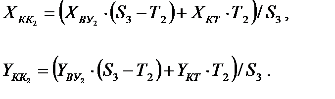 Для расчета координат КК2 могут быть применены и другие формулы: