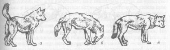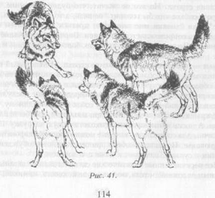 На рис. 42 а отражена попытка доказать свое превосходство, особенно, если иерархическое положение не ясно, когда хвост максимально закинут на спину, а уши «поданы» вперед.
